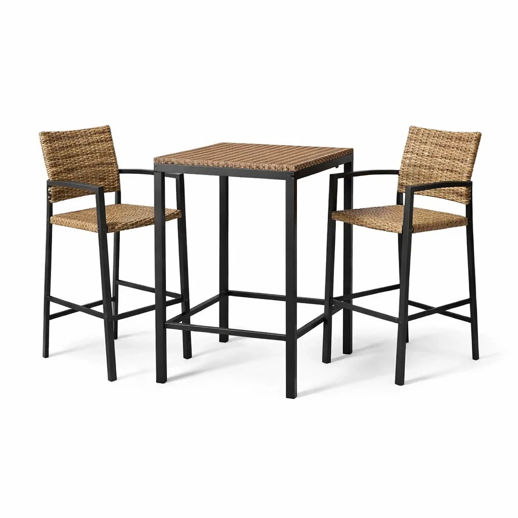 Dimensions : Table - Longueur 70 cm x Largeur 70 cm x Hauteur 110 cm. Chaises - Largeur 45 cm x Profondeur 50 cm x Hauteur d'assise 75 cm.